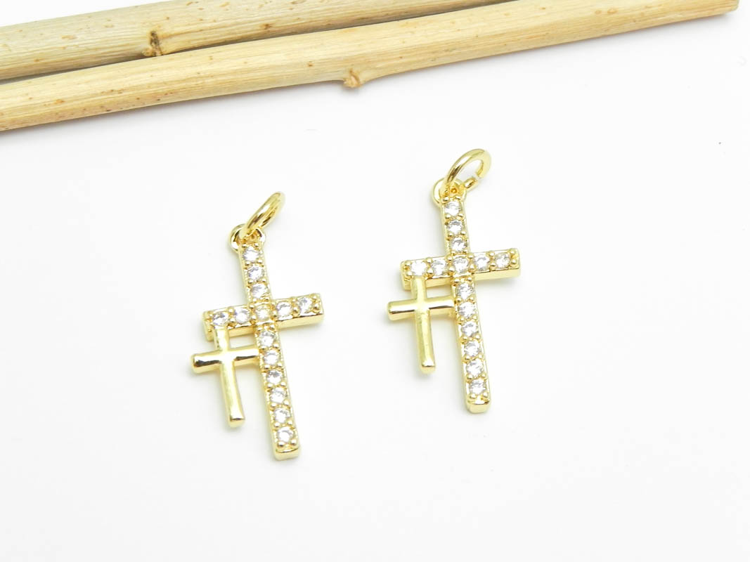 • Charm cubic zirconia cruce 20.5x11.5mm auriu (1buc)