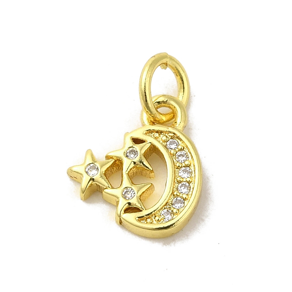 Charm cubic zirconia luna si stele 10.5x9.5mm auriu