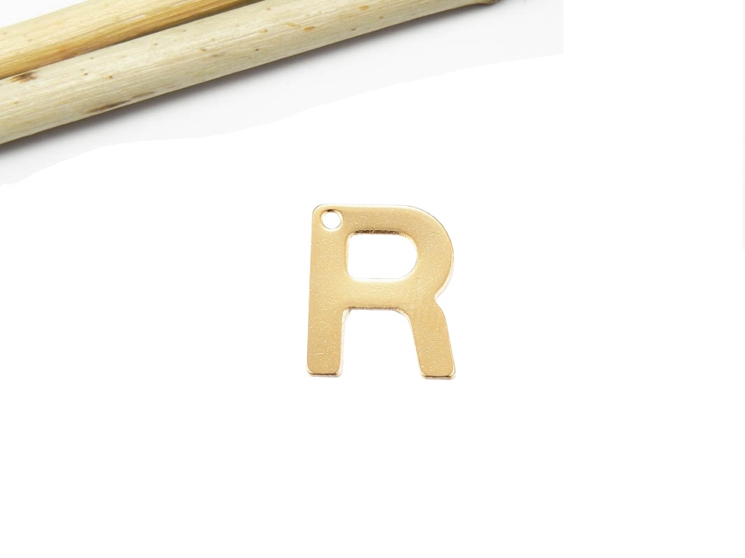 • Charm otel inoxidabil auriu 12x6~10mm litera R