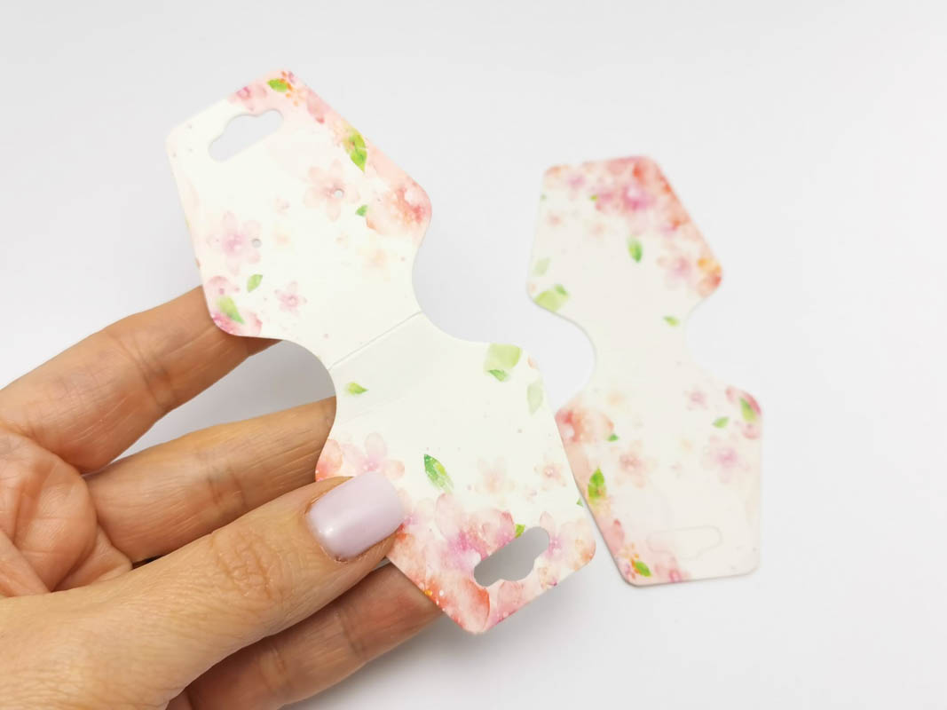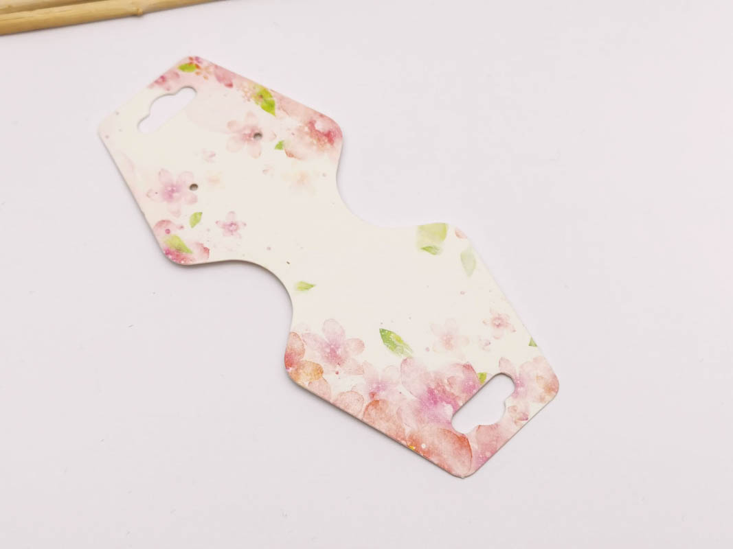 Etichete hartie suport bratari si coliere 108x44x0.4mm flori roz (10buc)