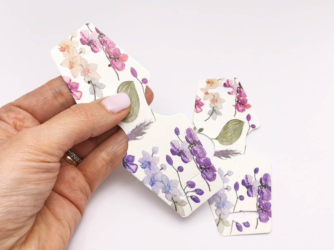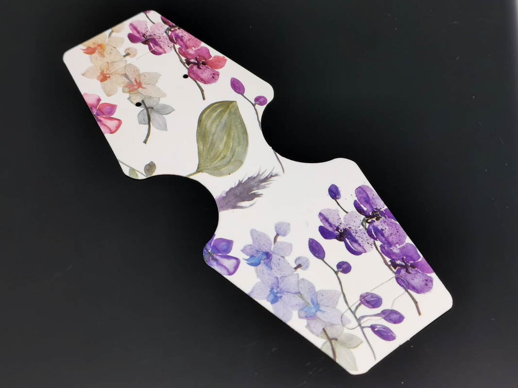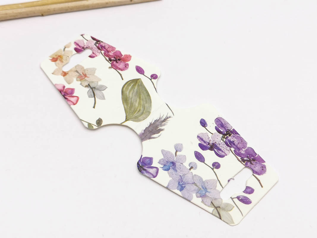 Etichete hartie suport bratari si coliere 125x45x0.4mm flori mov (10buc)