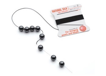 Firul are atasat la capat un ac rasucit din otel inoxidabil ce faciliteaza insirarea perlelor.
