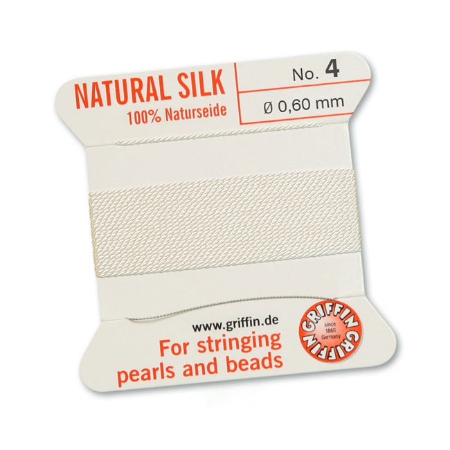 Fir matase naturala pentru insirat perle si margele nr 4 - 0.60mm alb (2metri)