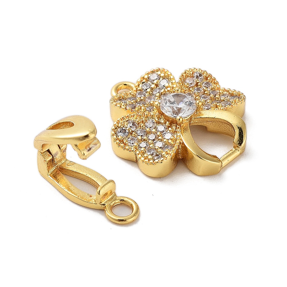 Inchizatoare cubic zirconia trifoi 25x15mm placat cu aur 18K