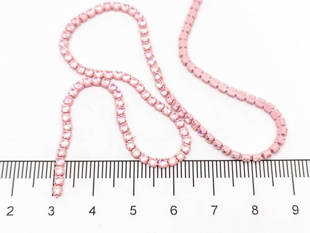 • Lant cu strasuri 2mm roz opal AB (0.5m)