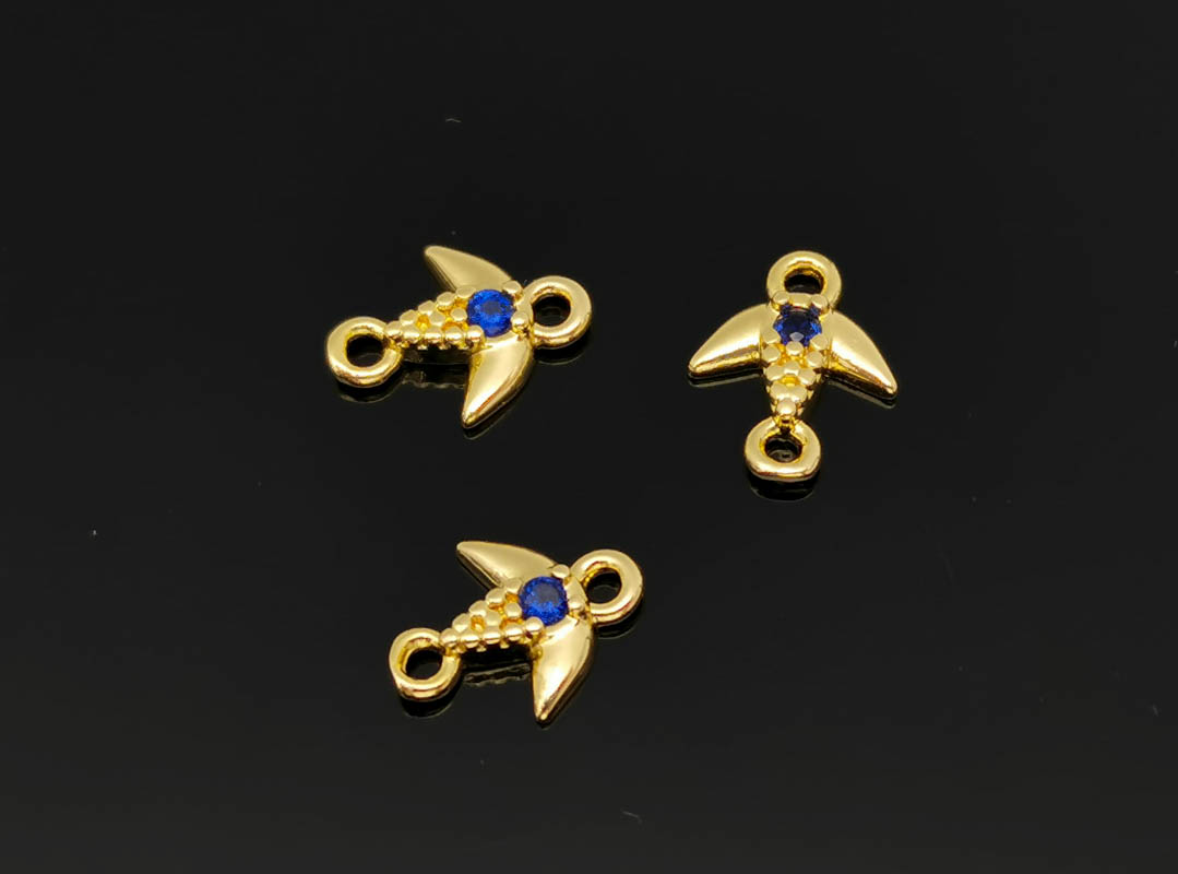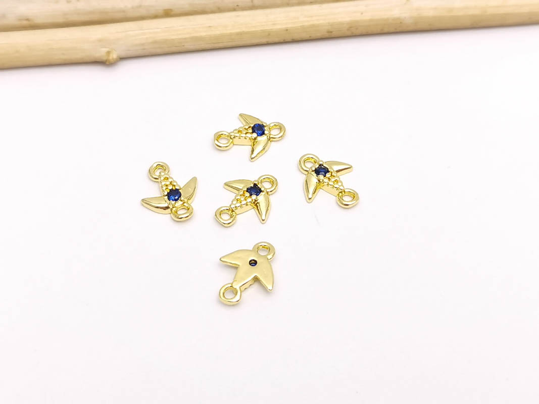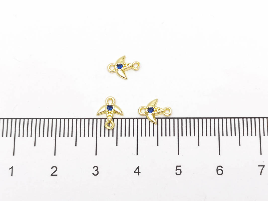 Link cubic zirconia auriu randunica 8x6.5x1.5mm albastru
