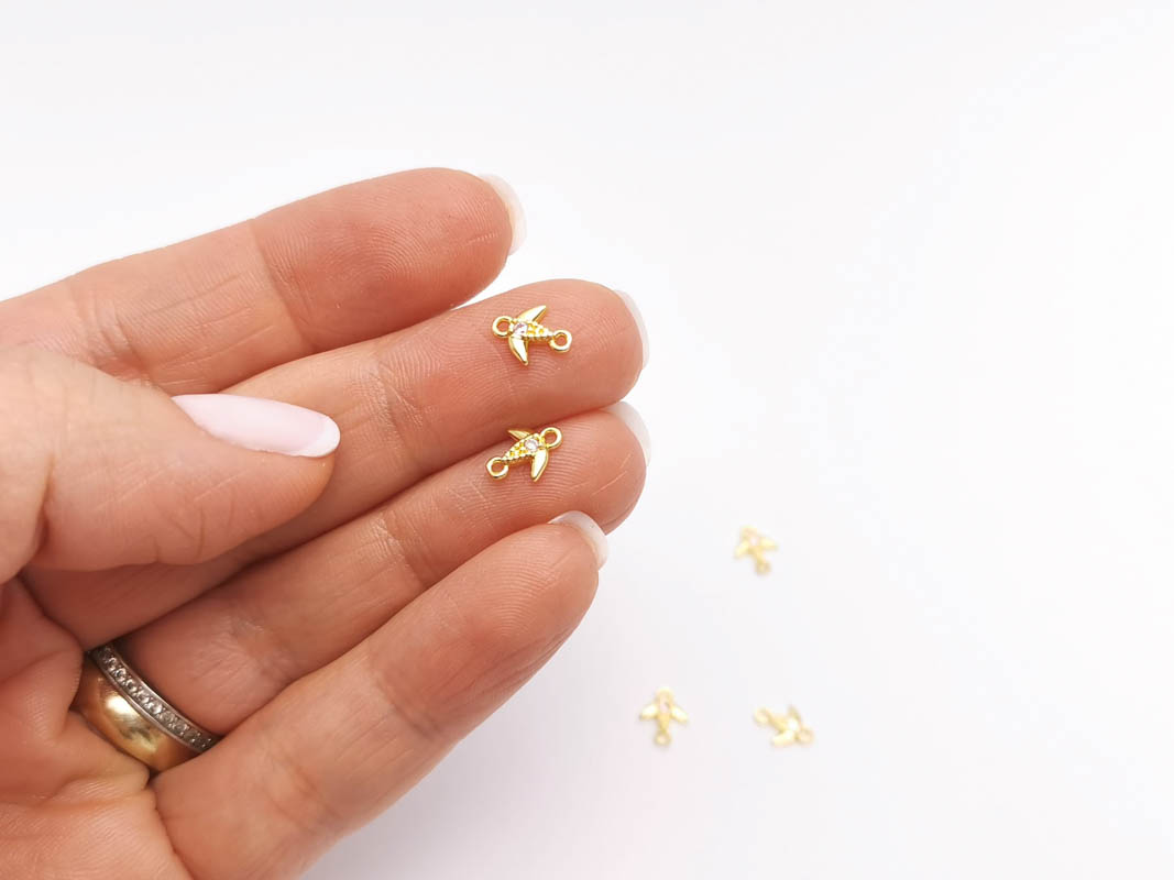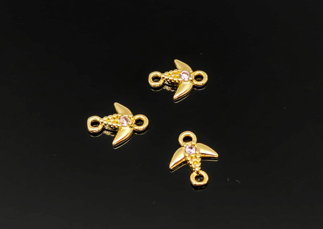 Link cubic zirconia auriu randunica 8x6.5x1.5mm roz