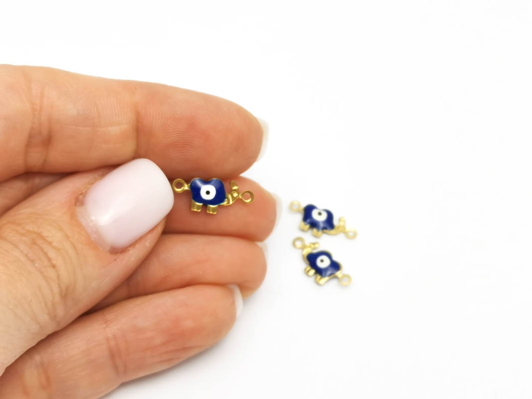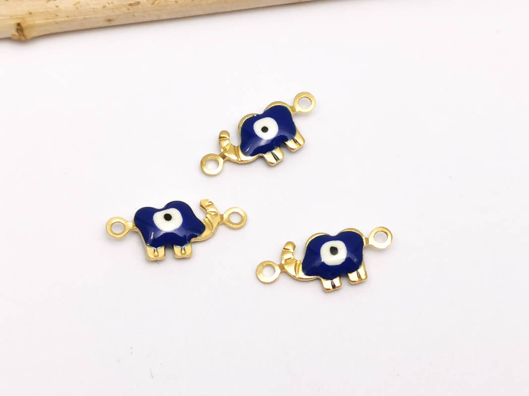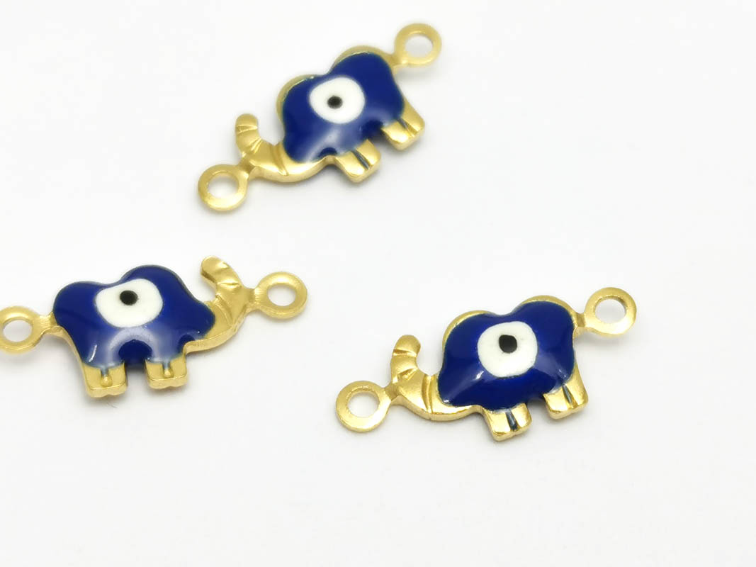 Link otel inoxidabil 304 auriu elefant cu ochi de deochi 15x6.5x2.5mm