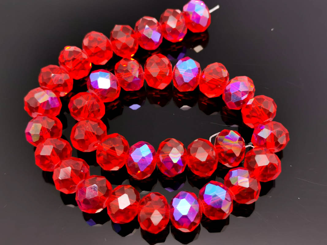 Margele cristal rondel fatetat 10x8mm rosu rubin heliotrop (sirag)