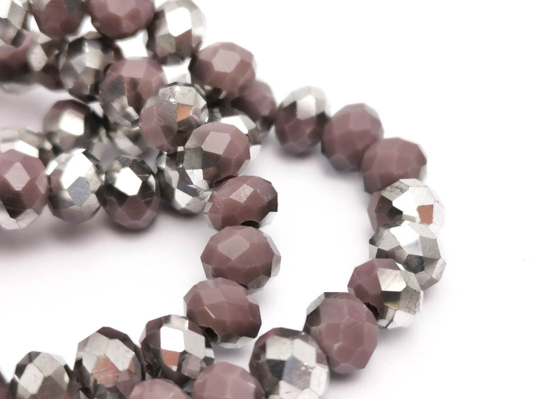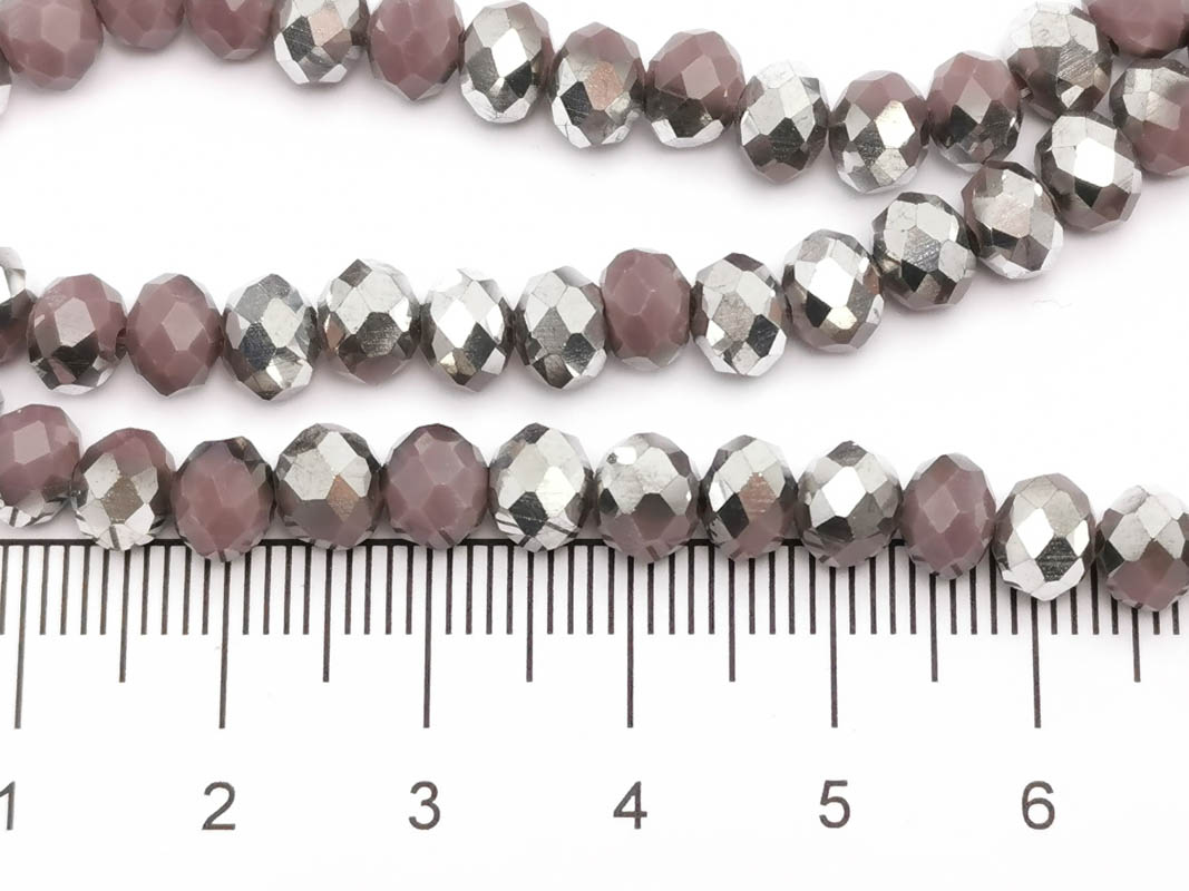 Margele cristal rondel fatetat 6x4mm mov opac cu argintiu (sirag)