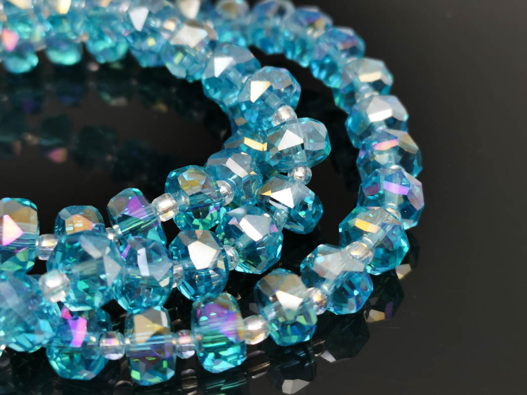 Margele cristal rondel fatetat 8x5mm turcoaz AB (sirag)