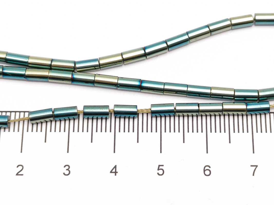 Margele de sticla tubulare 5x2.5mm iris verde (sirag)