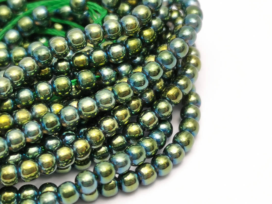 • Margele sticla electroplacate 2.5mm iris verde auriu (sirag)