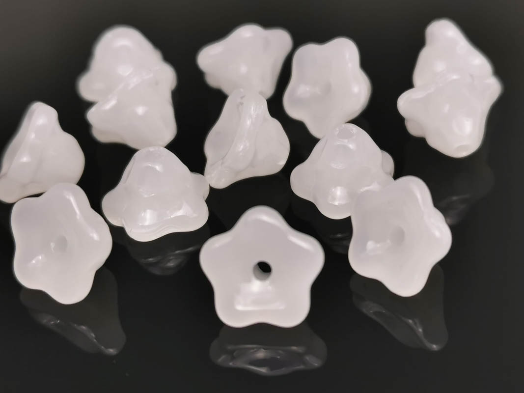 • Margele sticla floare 9x9x6mm alb opal (1buc)