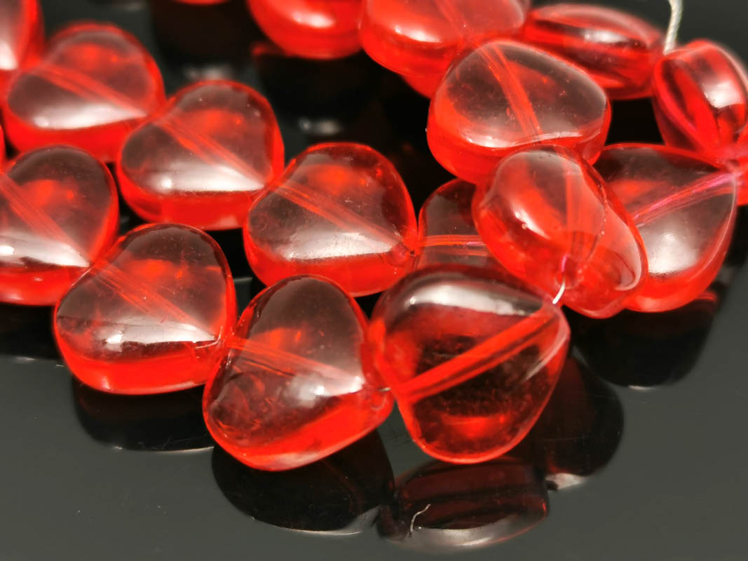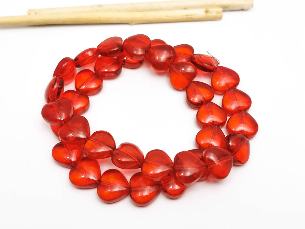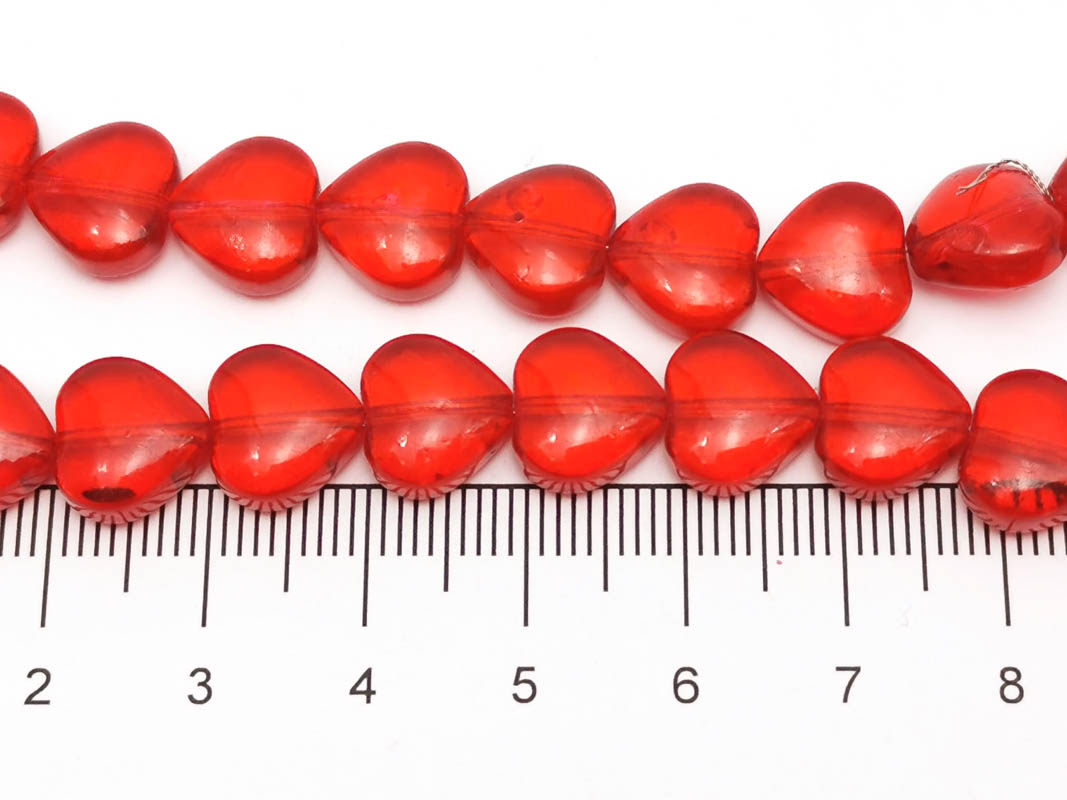 • Margele sticla inima 10x9.5mm rosu (sirag)