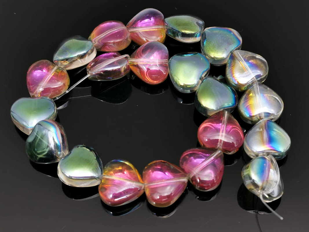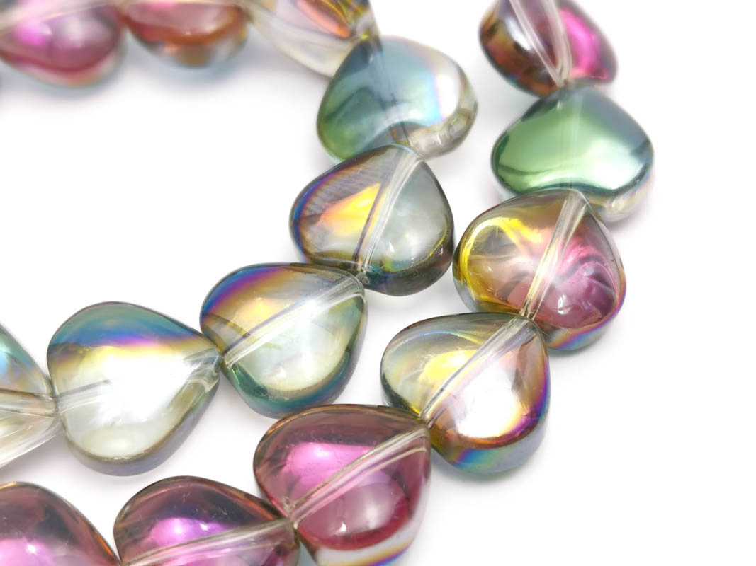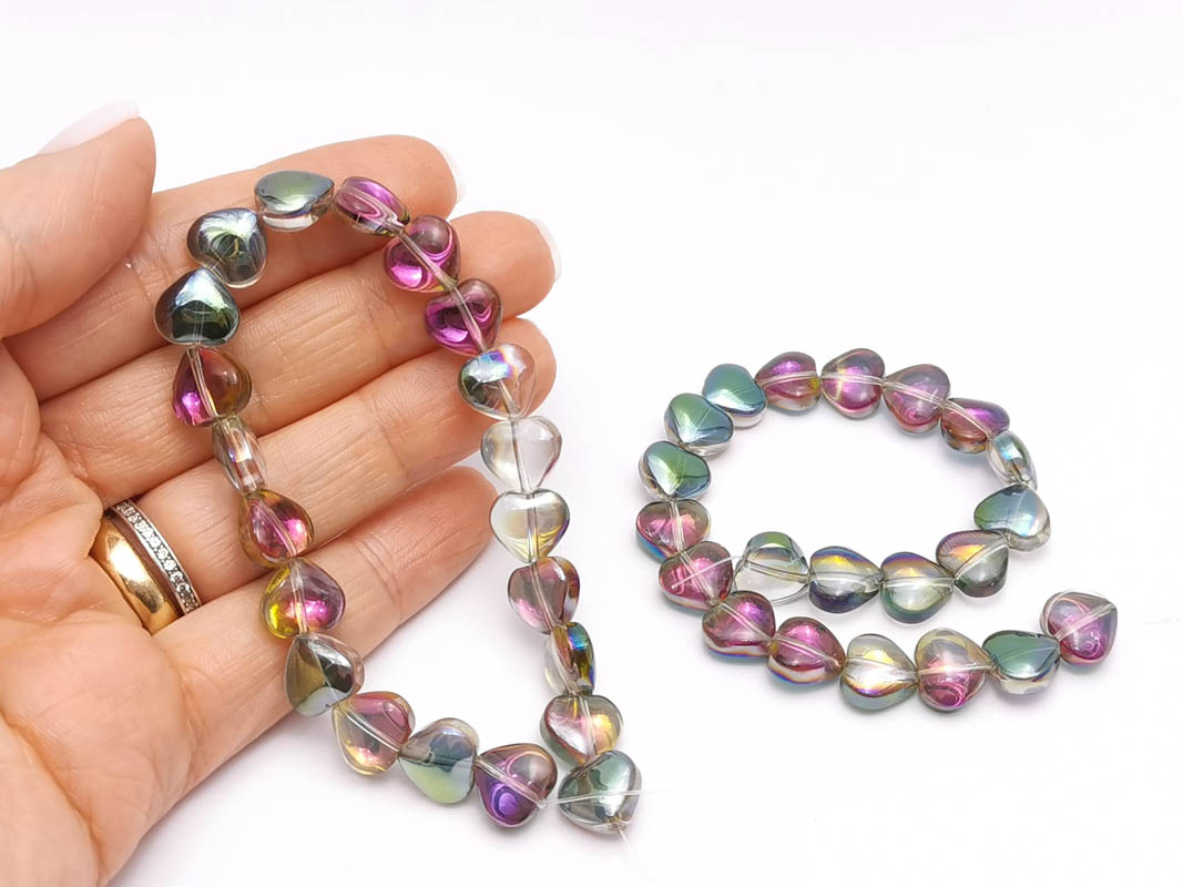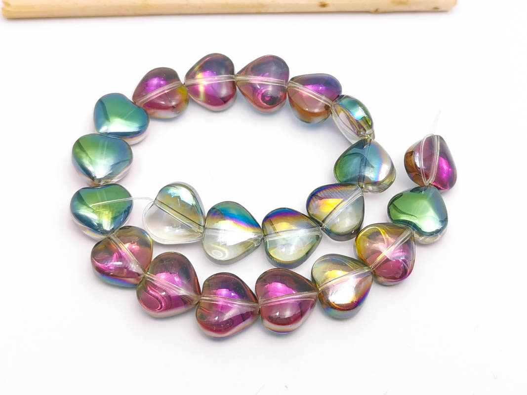 • Margele sticla inima electroplacate 10mm iris roz verde (sirag)