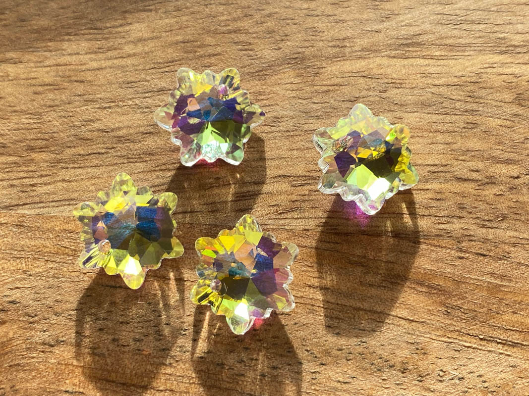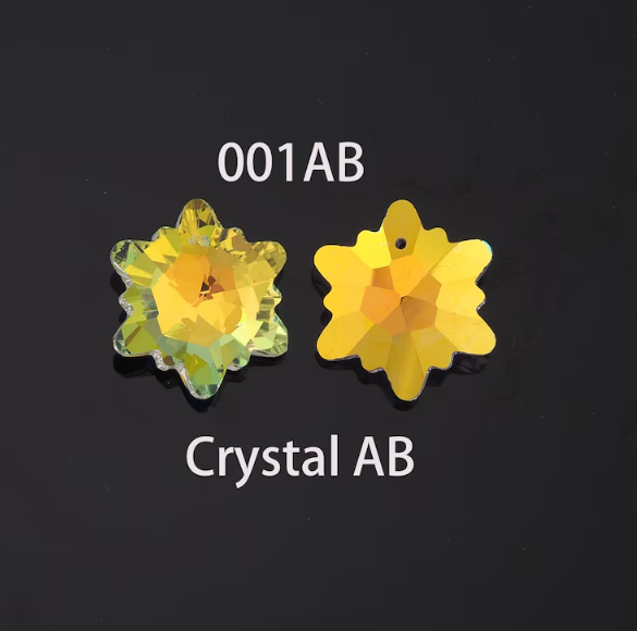 Pandantiv sticla fulg de nea 14mm transparent auriu AB