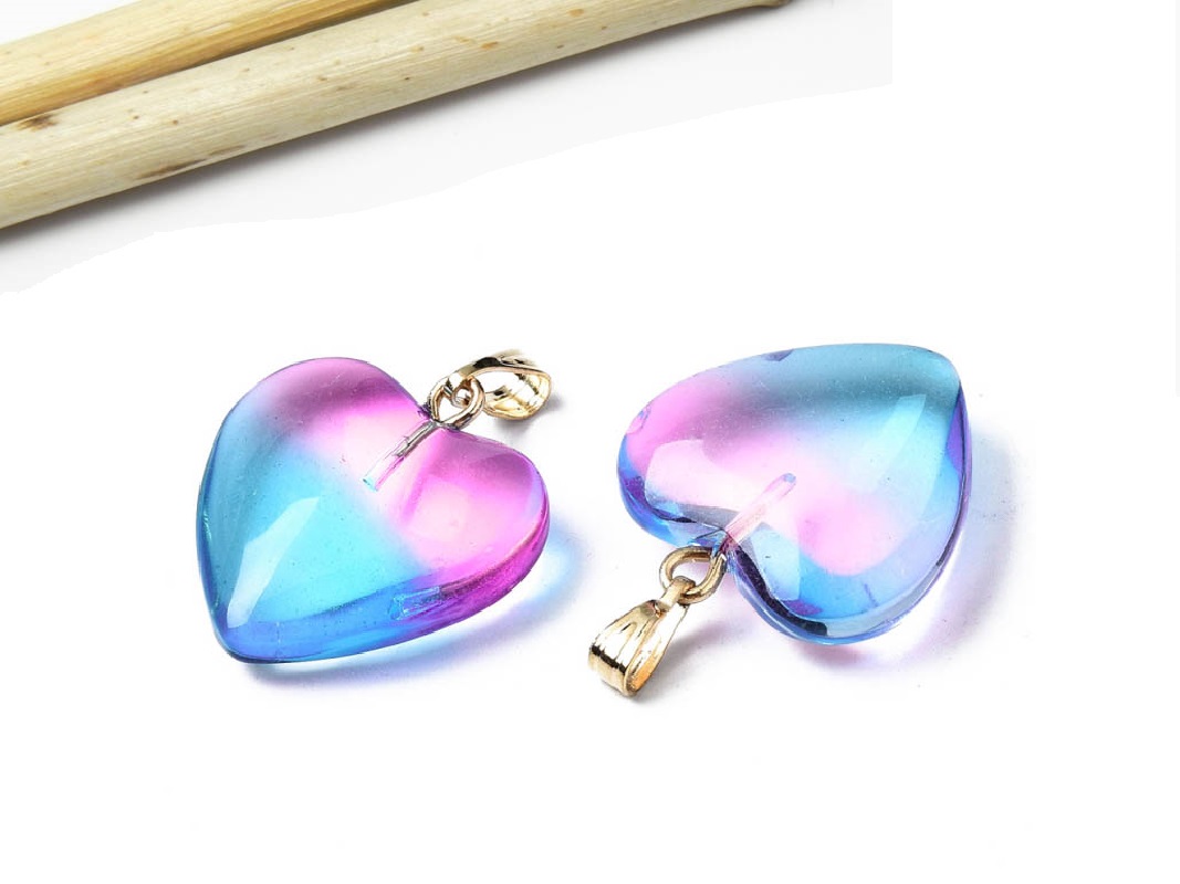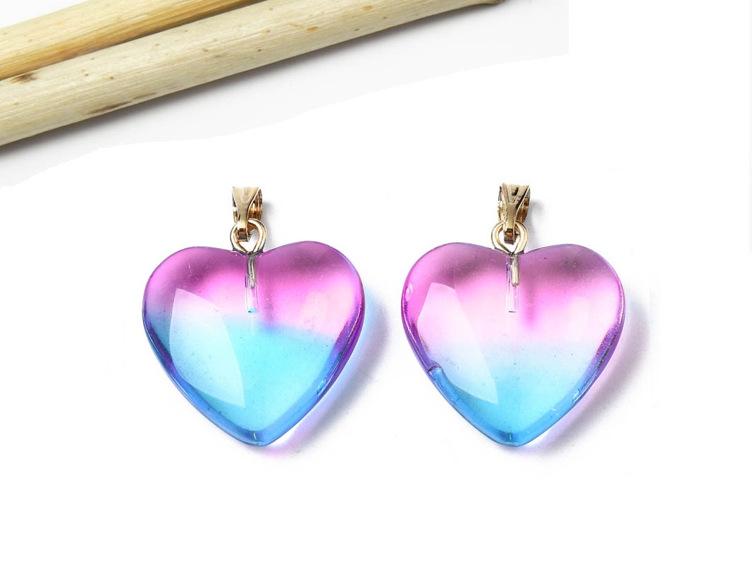 • Pandantiv sticla inima 22x20mm albastru fucsia