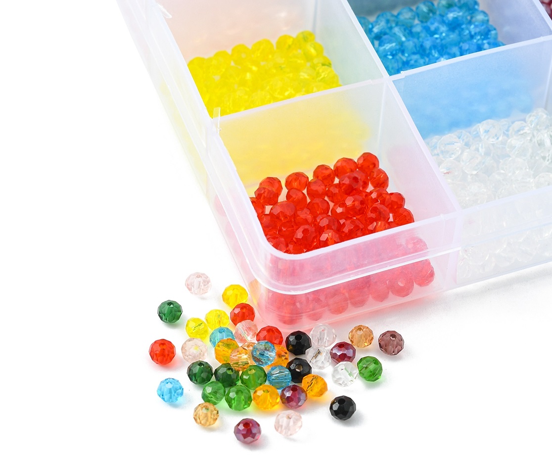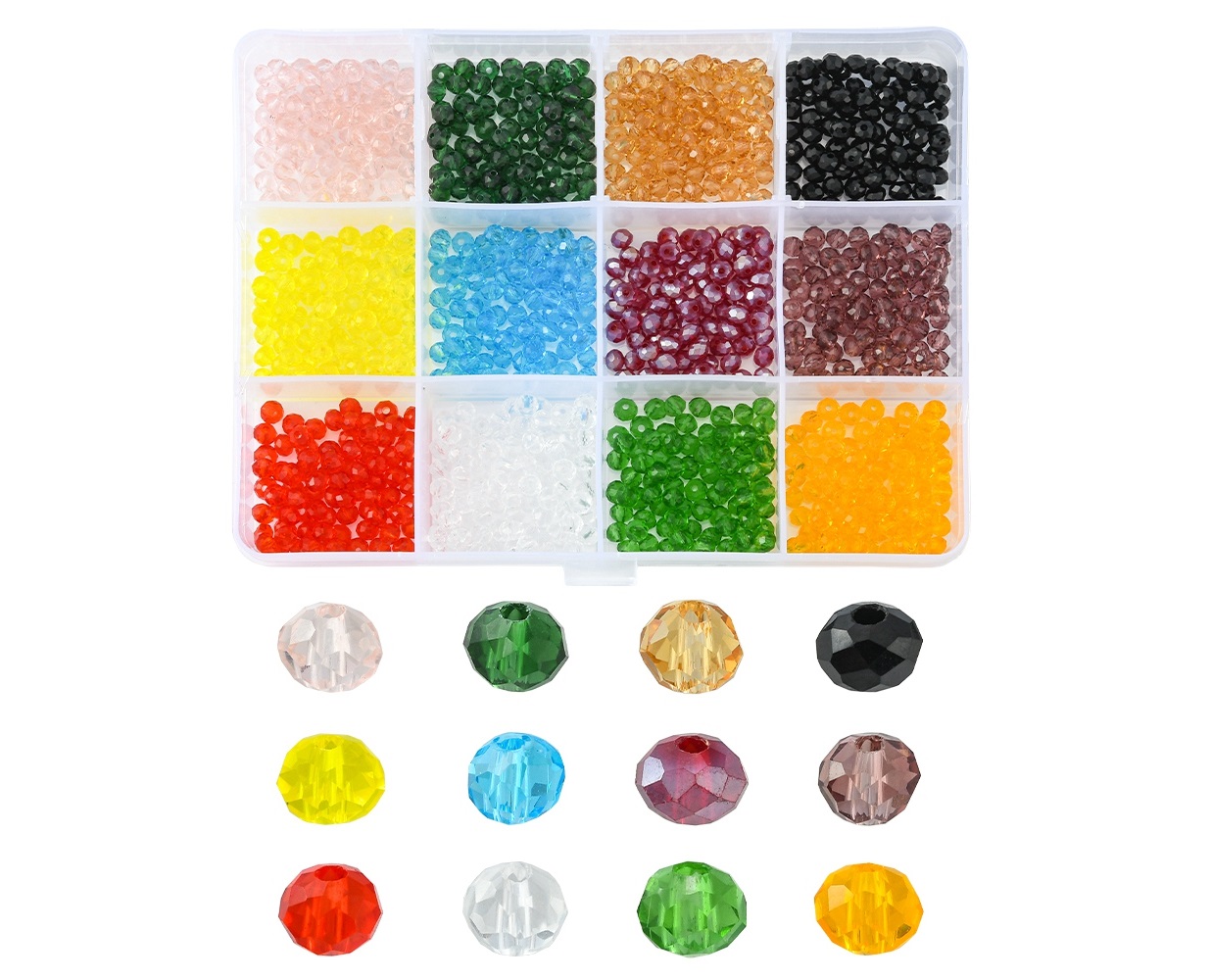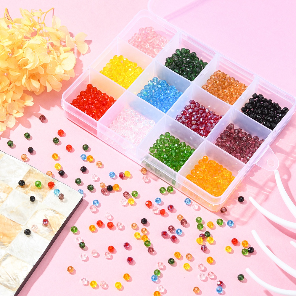 Kitul contine 12 culori a cate 80 buc de cristale rondele 4x3mm + cutie compatimentata