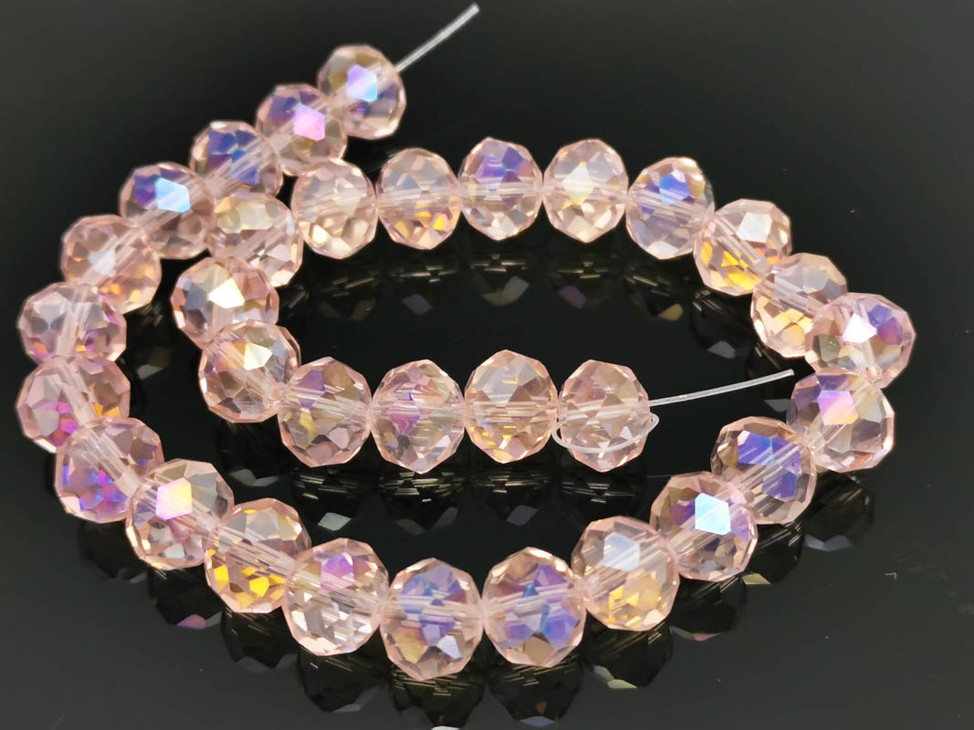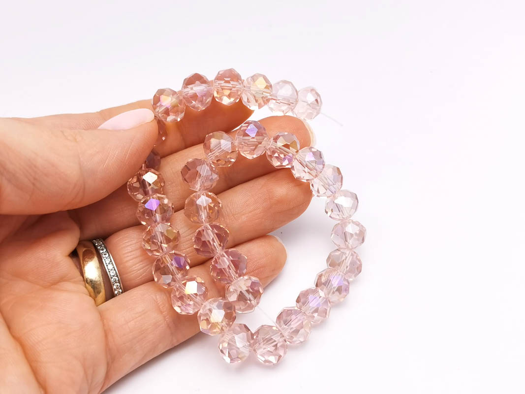 Margele cristal rondel fatetat 10x8mm roz AB (sirag)