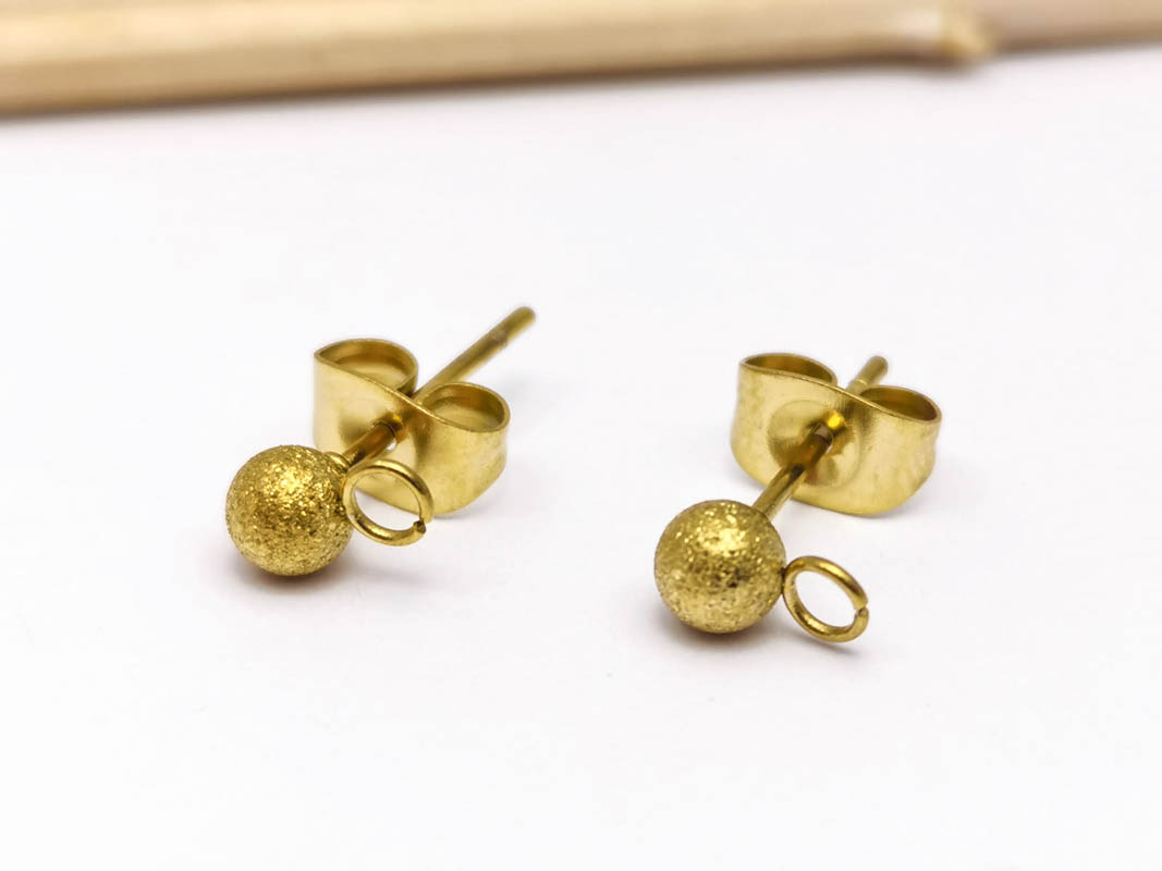 • Tortite cercei otel inoxidabil 304 auriu cu opritor biluta texturata (2buc)