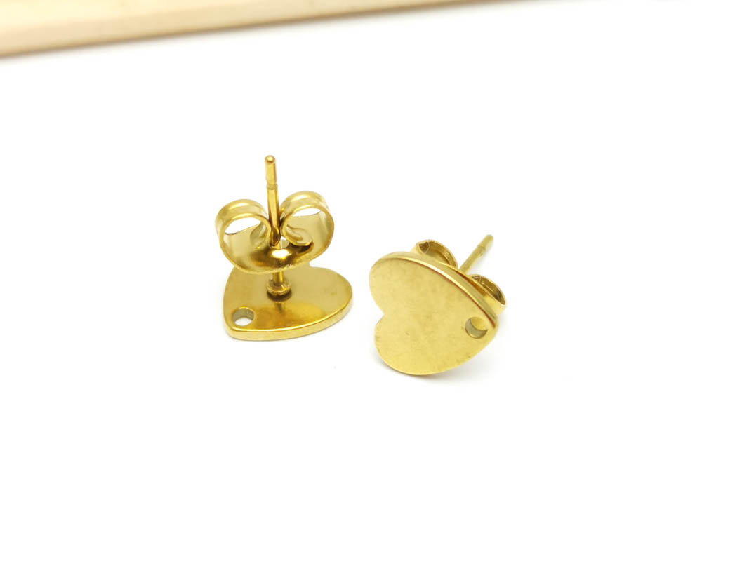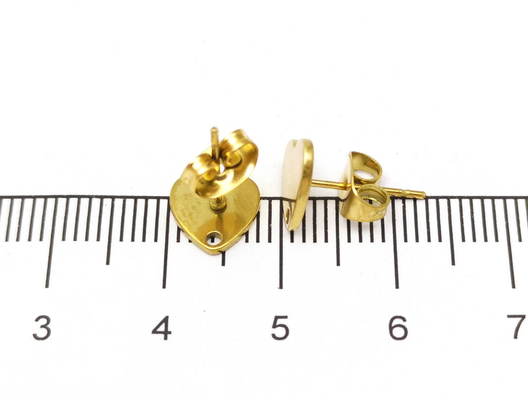 • Tortite cercei otel inoxidabil 304 auriu cu opritor inima 8x7.5mm (2buc)
