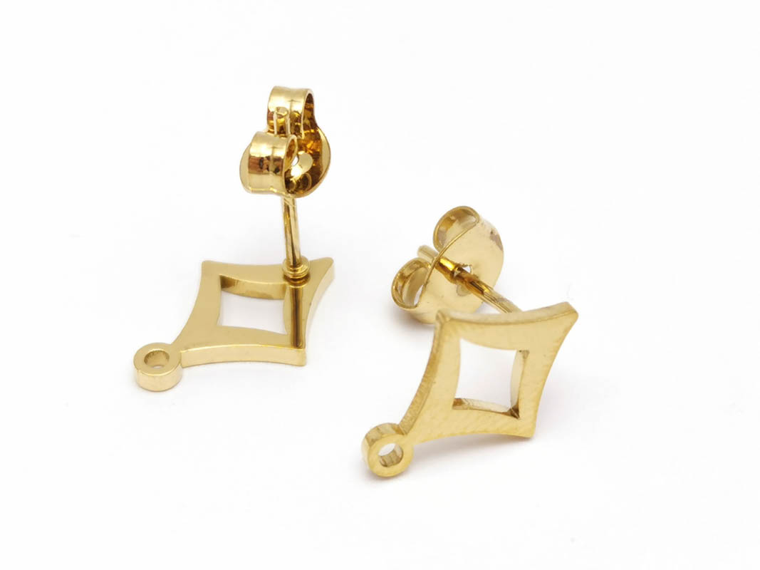 • Tortite cercei otel inoxidabil 304 auriu cu opritor romb 12.5x8.5mm (2buc)